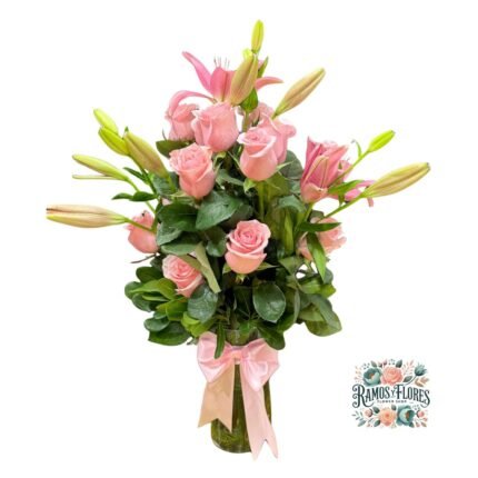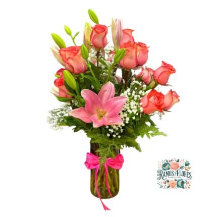 Florero 16 Rosas + Lirios