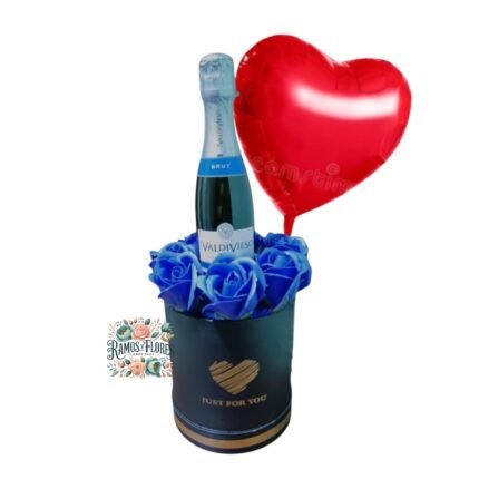 Caja De 10 Rosas + Bombones + Espumante Valdivieso Limited Rose + Mini Globo