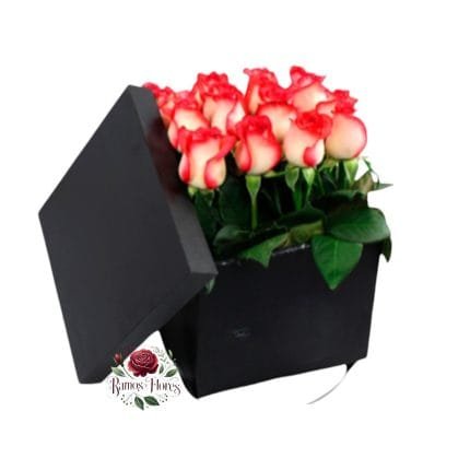 Box Cuadrado 12 Rosas + Bombones Ferrero