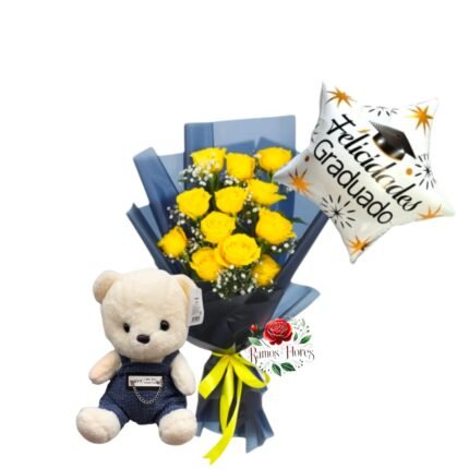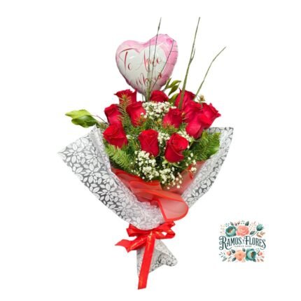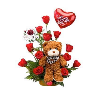 Arreglo 12 Rosas + Peluche + Globo