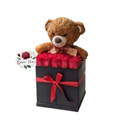 Caja 12 Rosas Rojas + Peluche
