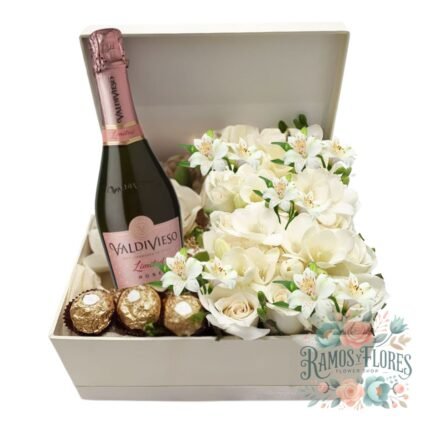 Box 12 Rosas + Bombones Ferrero + Botella Espumante 187ml