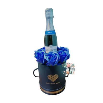Box Cilindro 7 Rosas Eternas Azules + Botella De Espumante