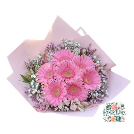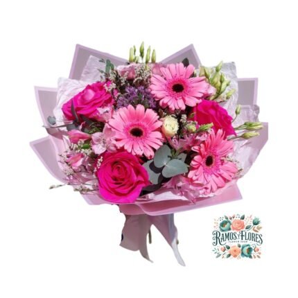 Ramo Primaveral Rosa + Gerbera + flores de Temporada