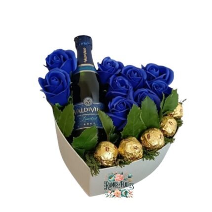 Box Corazón 16 Rosas + 12 Bombones + Espumante