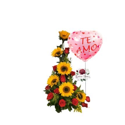 Arreglo 12 Rosas + 6 Girasoles + Globo