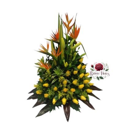 Arreglo 24 Rosas + 2 Lirios + 5 Aves Del Paraíso