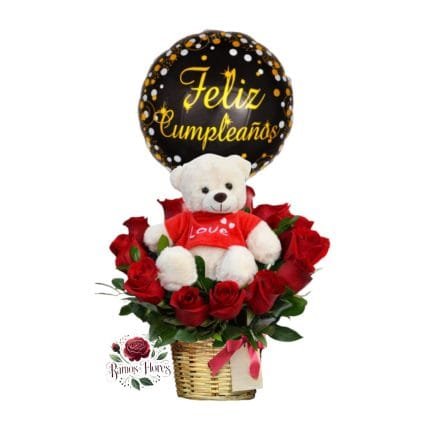 Arreglo Canasta 20 Rosas + Bombones Ferrero x3 + Globo