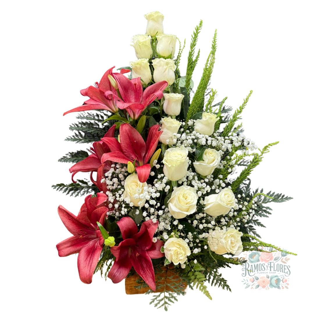 Arreglo Fúnebre de 15 Rosas + Lirios