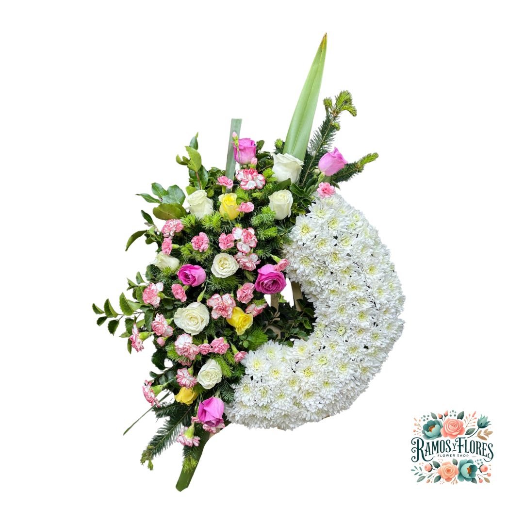 Corona Fúnebre: Rosas + Maule + Follaje de Temporada