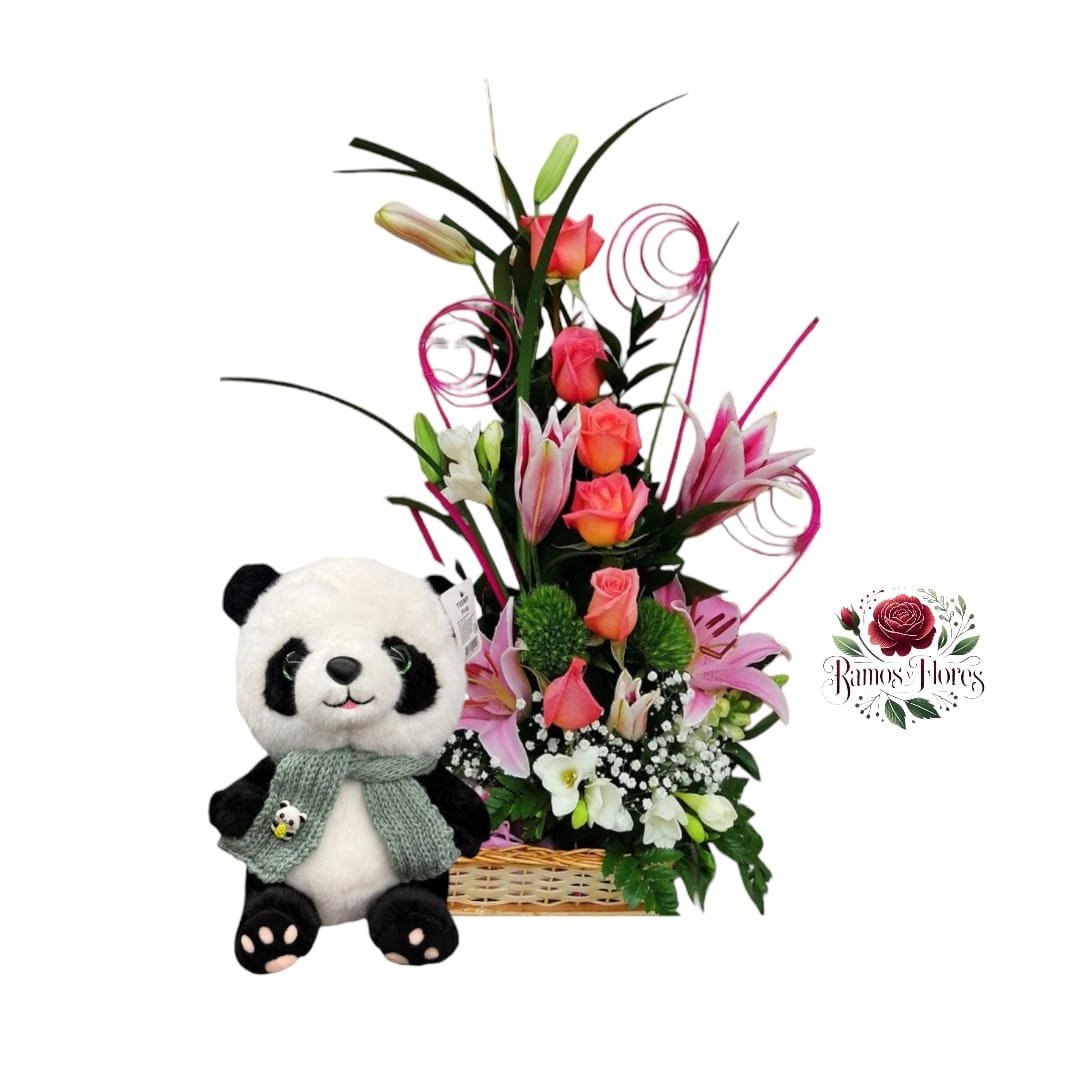 Arreglo 6 Rosas Rosadas + Lirios + Peluche