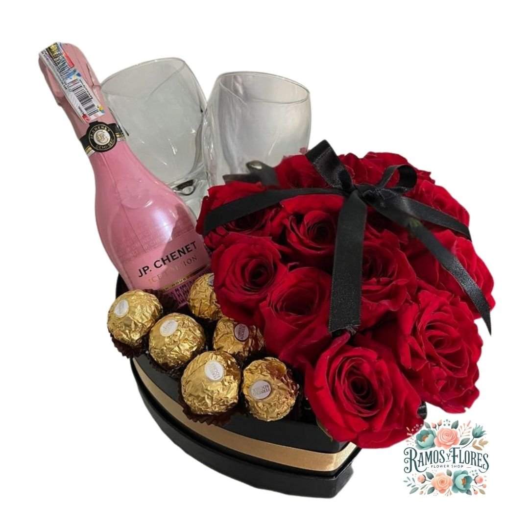 Sé el primero en valorar “Box Corazón 10 Rosas + Espumante Jp Chenet Ice Rosé + 2 Copas de Vidrio Espumante + Bombones” Cancelar la respuesta
