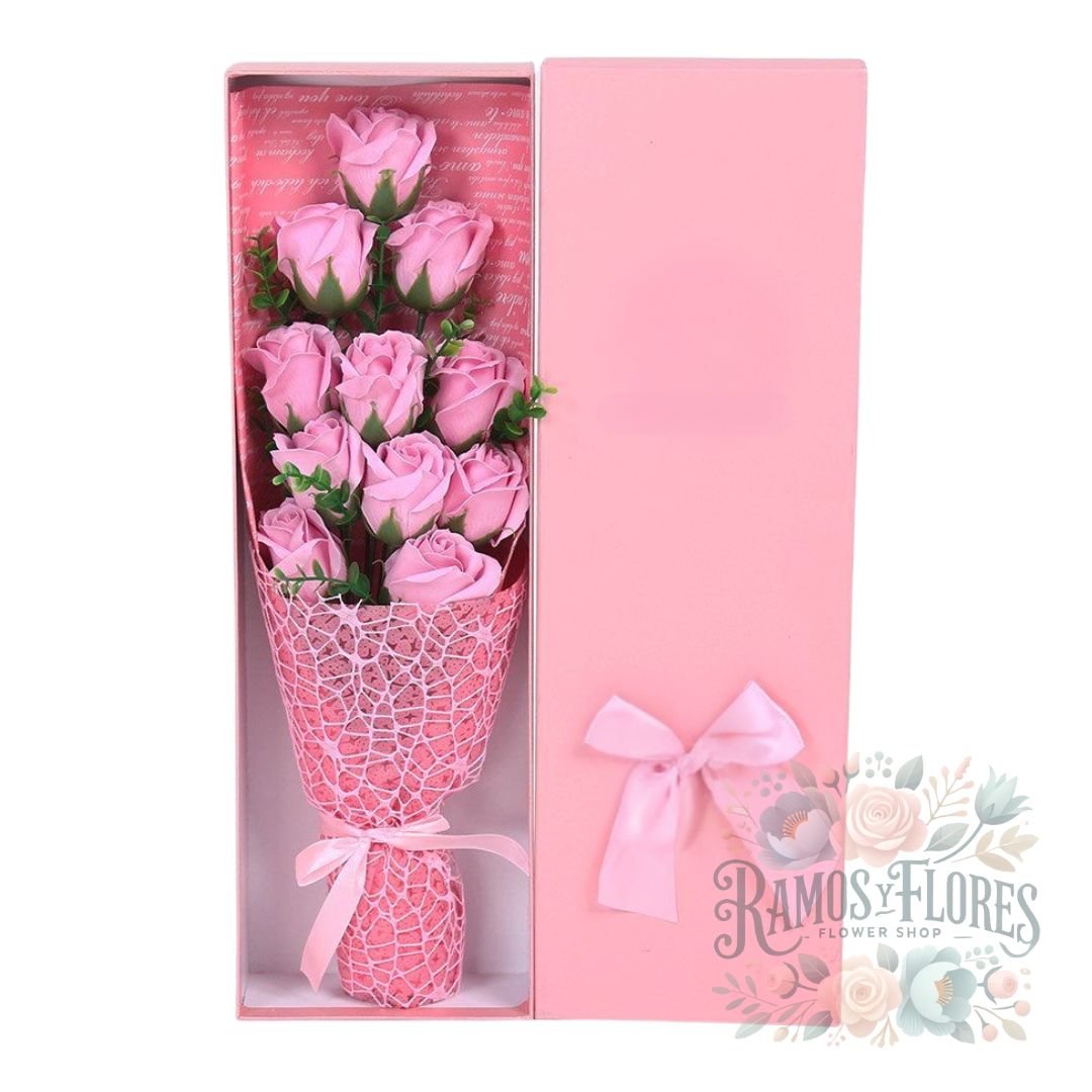 Caja 12 Rosas Eternas De Jabón Rosadas