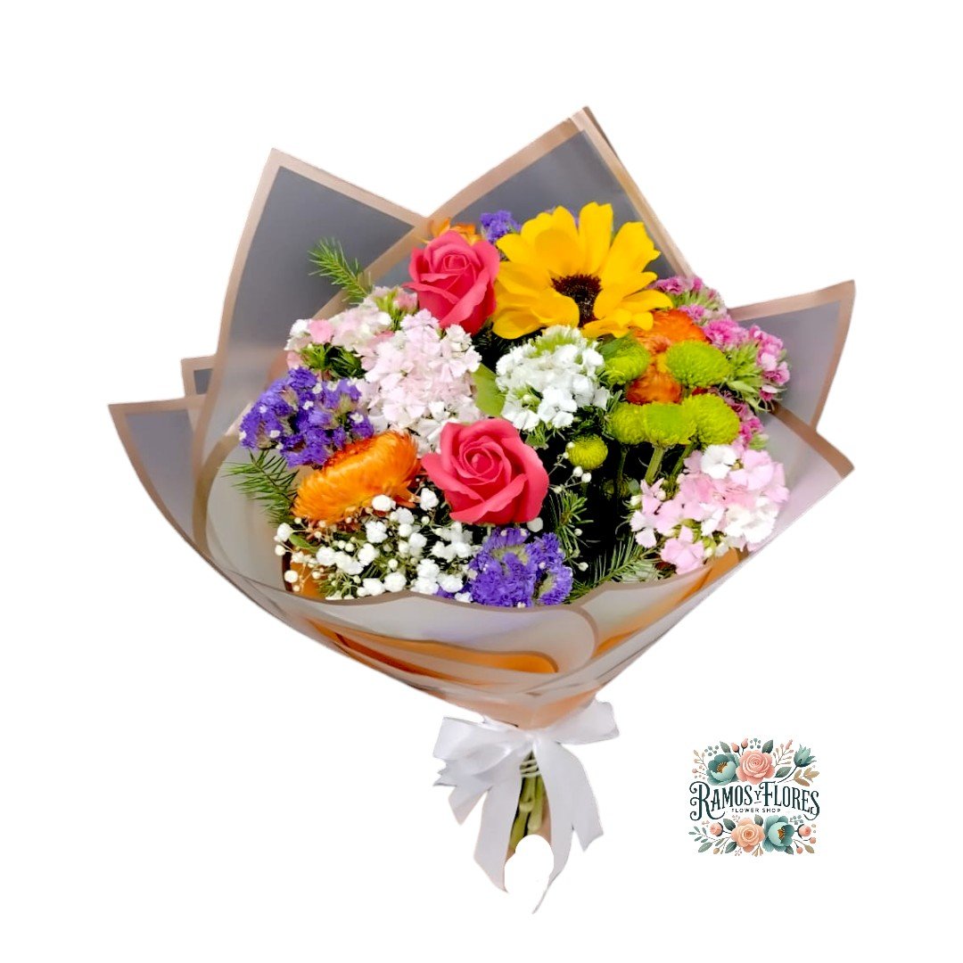 Ramo Primaveral + Rosas + Girasol + Flores de Temporada