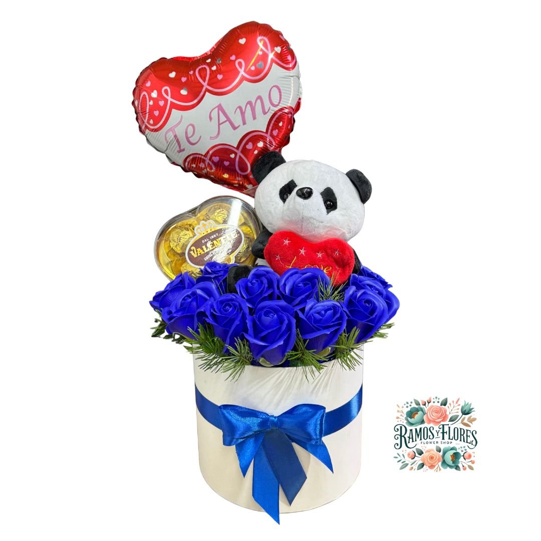 Box Cilindro 11 Rosas Eternas De Jabón + Peluche + Bombones + Globo
